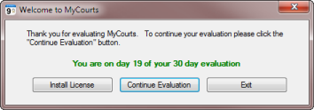 To install your new licence, start MyCourts and wait for the following window to be displayed: